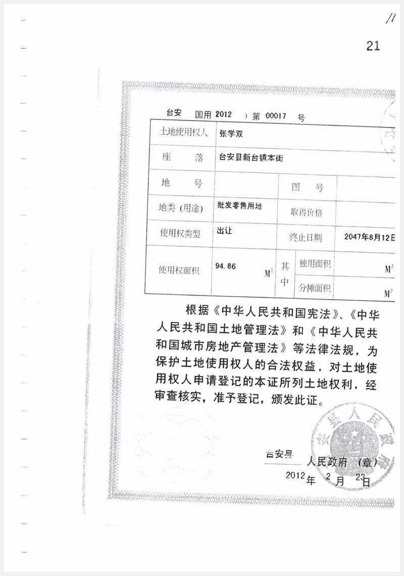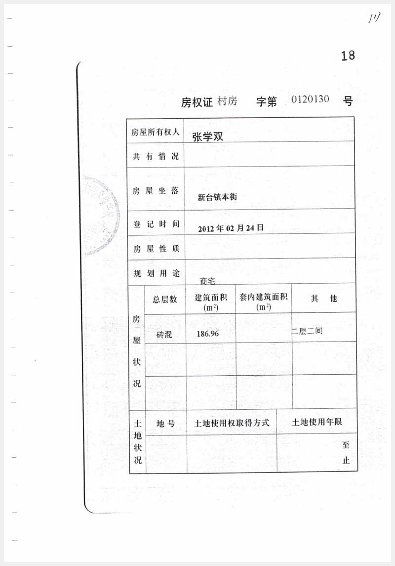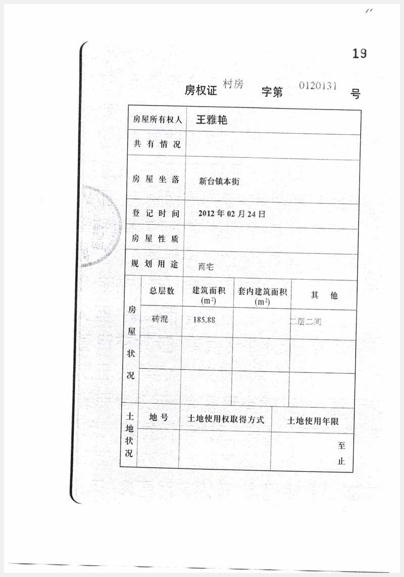 名稱:臺安縣新臺鎮(zhèn)本街2處房產(chǎn) 面積:185.88㎡、186.96㎡ 瀏覽次數(shù):1269