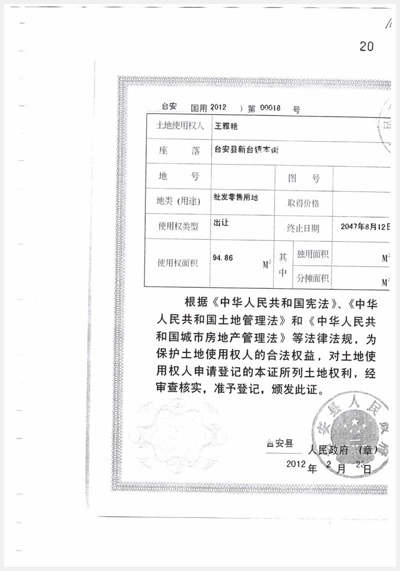 地址:臺安縣新臺鎮(zhèn) 標的號:107